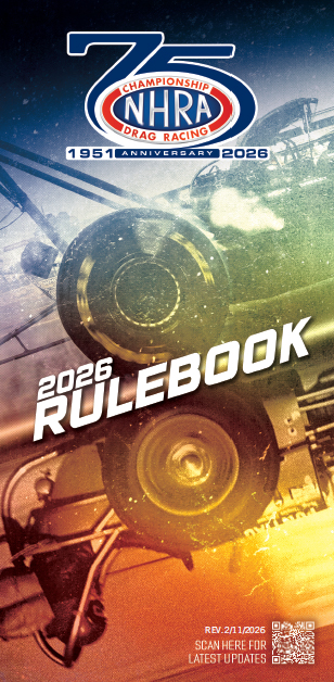 • 1/4 Mile Race with times between 9.00 to 13.99. • NHRA Chassis Certification mandatory on all entries running 9.00 or quicker in the 1/4 mile or any entry that exceeds 135 MPH. • All drivers 9.99 & Faster must have an NHRA License. • Computers, unless OEM stock, data recorders, stutter boxes, throttle stops and delay boxes are prohibited.. • Trans brake / dual line-loc's are allowed as long as the wiring consists of a single continuous wire from the power source to a switch and a single continuous wire from the switch to the transbrake or line-loc. All trans brake / line loc buttons must be NHRA accepted. (List of accepted buttons can be found on NHRA.com) Two step rev limiter and automated shiferters are permitted. • EV Vehicles are permitted. • ILower engine containment devices required for all vehicles running 9.99 or quicker. • Refer to Section 5 of the 2025 NHRA Rulebook for additional rules and specifications. |